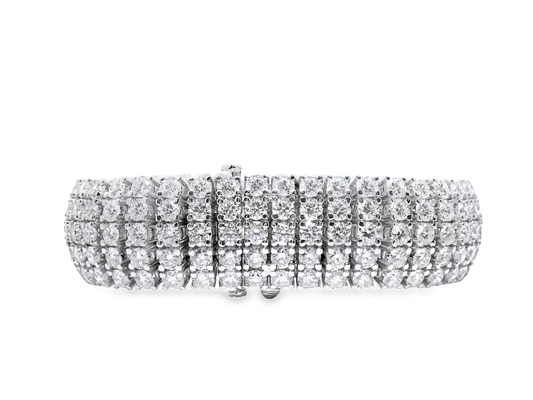 32.03CT Diamond 5 Row Tennis Bracelet 14k White Gold