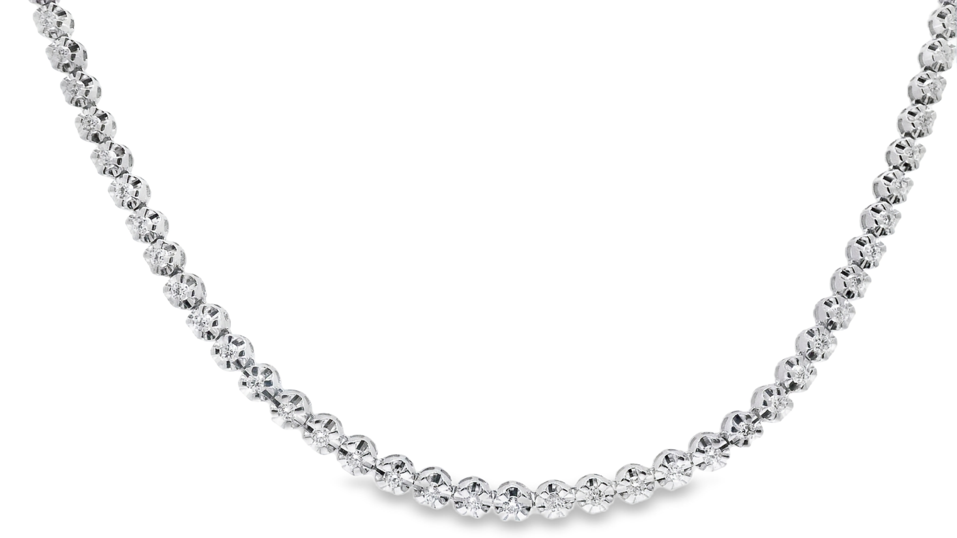 Elevate your collection with this 2.56-carat Diamond Buttercup Tennis Necklace crafted in 14K white gold. Featuring expertly set buttercup-style diamonds, this piece combines timeless elegance with refined craftsmanship. The necklace’s sleek design offers versatility for both everyday wear and special occasions, ensuring a sophisticated sparkle that complements any ensemble.