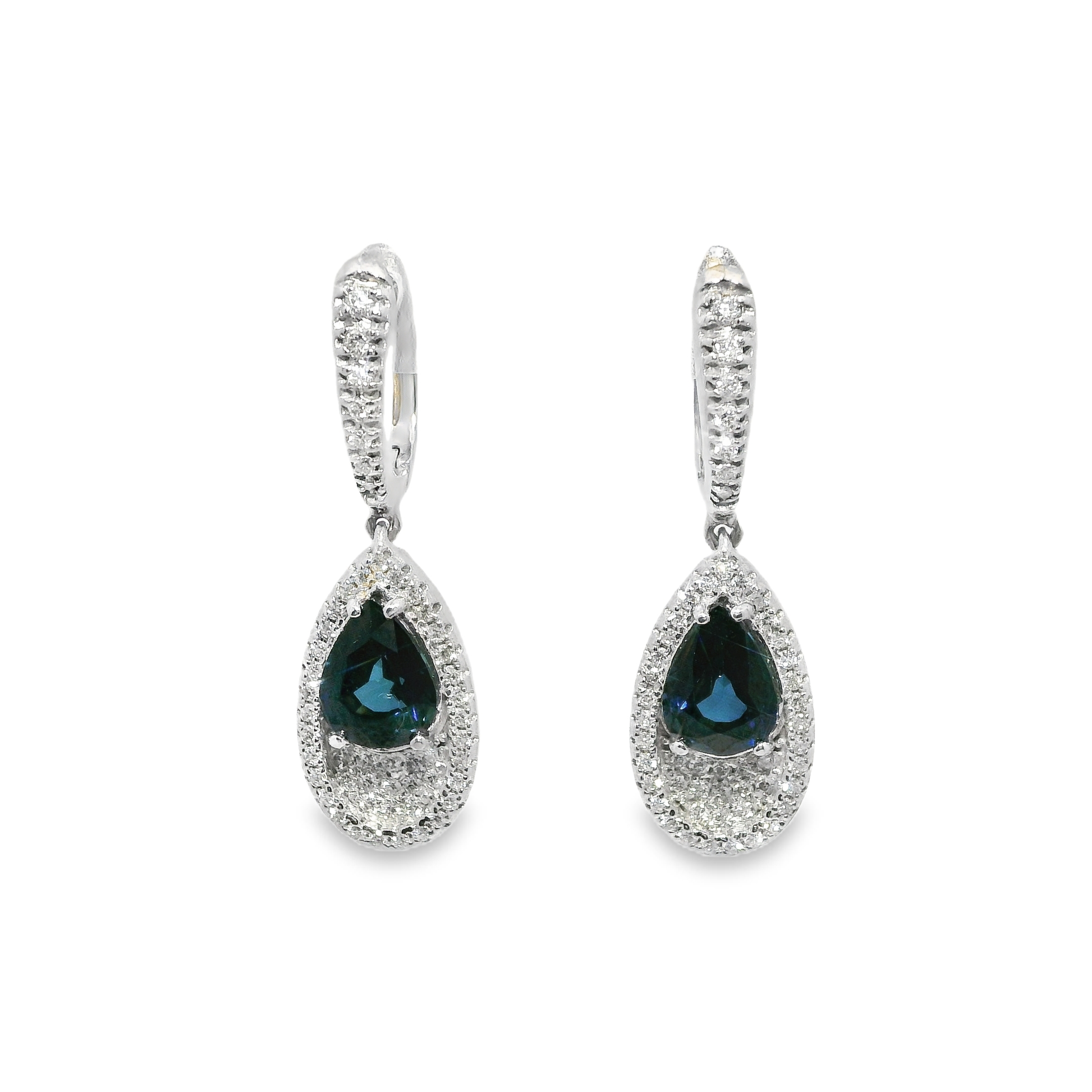 Elevate your elegance with these exquisite earrings featuring 0.80CT diamonds paired with 1.80CT blue sapphires, set in lustrous 14k white gold. The brilliant diamonds beautifully complement the deep blue sapphires, creating a stunning contrast that adds a touch of sophistication to any outfit. Perfect for making a memorable impression on any occasion.