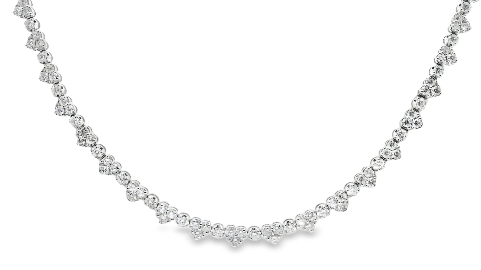 9.68CT Heart Shaped Tennis Necklace 18K White Gold