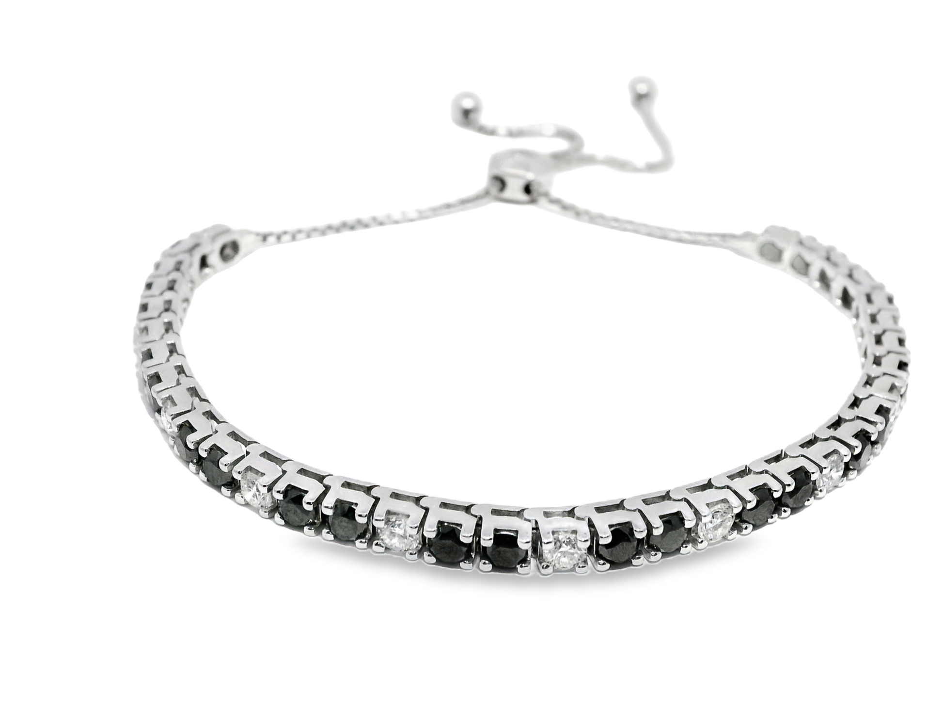 1.15CT Diamond 3.07 Black Diamond Zip Bracelet 14k White Gold