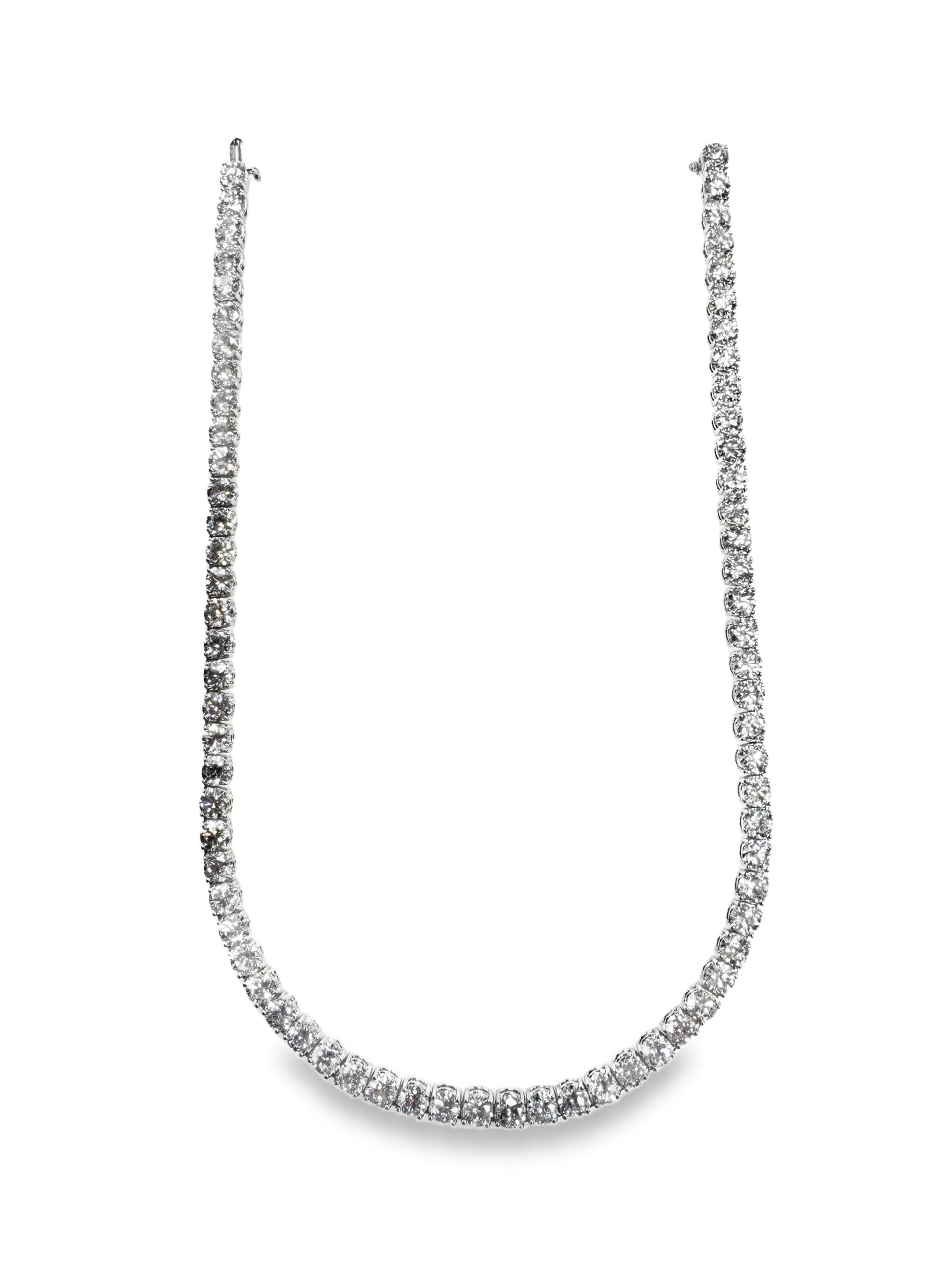 Make a dazzling statement with this 40.04CT Lab Diamond Tennis Necklace set in luminous 14K white gold. Crafted with precision, the lab-grown diamonds deliver exceptional sparkle and a stunning brilliance that complements any outfit. Ethically created, this necklace offers both luxury and peace of mind, perfect for elevating your style with timeless elegance and conscious beauty.