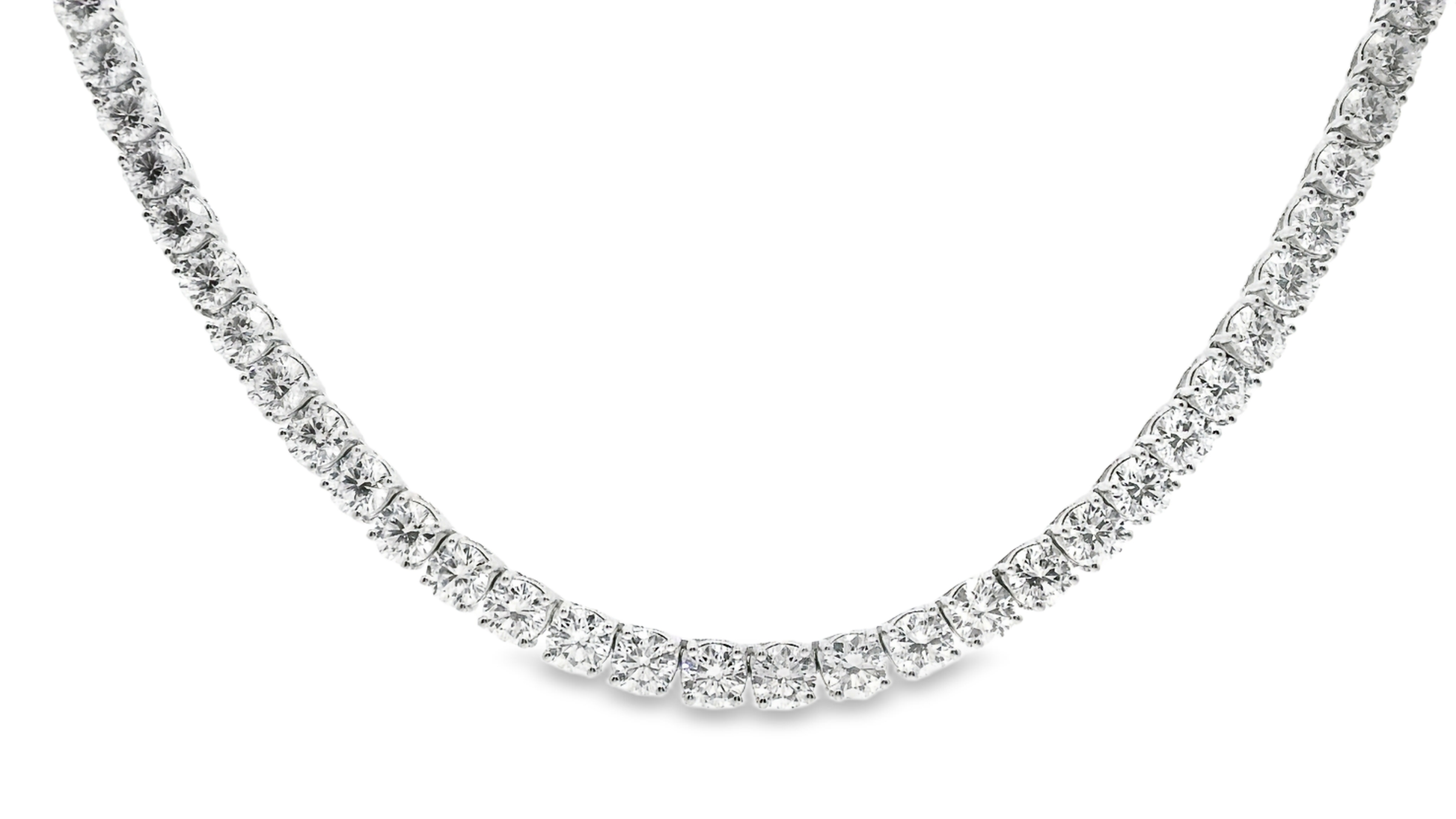 Make a lasting impression with this 33.25CT Lab Diamond Tennis Necklace crafted in elegant 14K white gold. Featuring brilliant lab-grown diamonds, it delivers exceptional sparkle with an ethical touch. This necklace is the perfect accessory to elevate any look, combining timeless sophistication with conscious luxury.