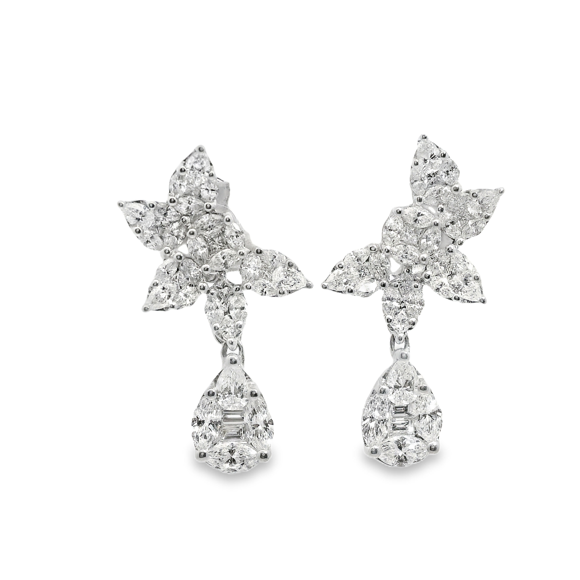 These 2.89-carat diamond earrings, set in 18k white gold, offer a refined balance of brilliance and elegance. Expertly crafted to maximize each diamond’s natural sparkle, they provide a timeless accessory suitable for both everyday sophistication and special occasions. The durable 18k white gold setting ensures lasting quality while enhancing the diamonds’ radiant clarity. Perfect for those seeking understated luxury with exceptional craftsmanship.